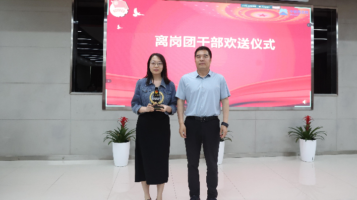 会议现场还举行了离岗团干部欢送仪式,为离岗团干部代表发离岗团干纪念杯。