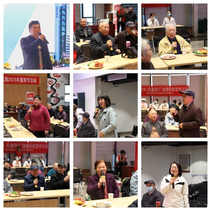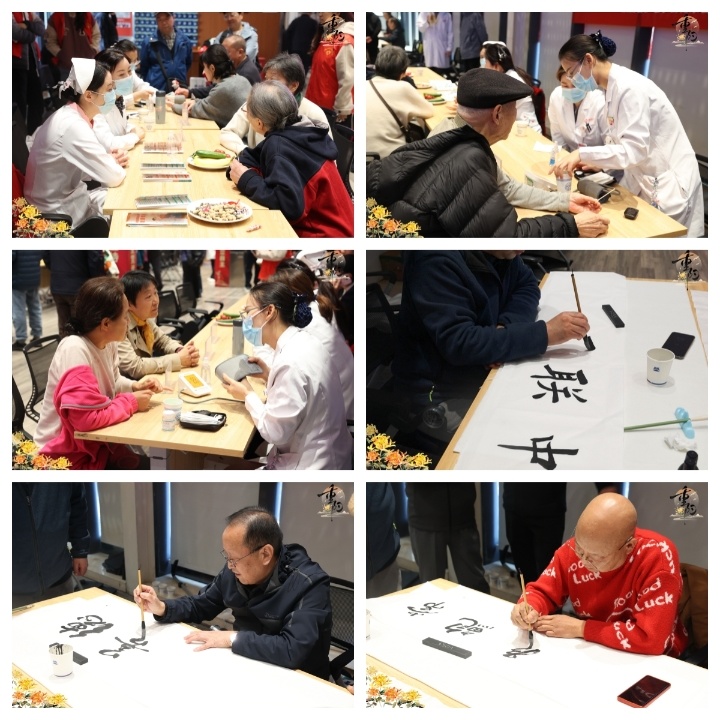 本次活动特别设置了医疗爱心服务区与书法互动区,西安国际医学中心医护人员为老同志提供血压血糖测量、健康咨询和个性化保健建议;书法爱好者则现场挥毫,以墨香传递对公司发展的美好祝愿。中午,老同志们前往食堂用餐,志愿者全程引导协助,食堂专门准备低盐低脂、营养均衡的餐食,让大家在温馨就餐中延续情谊。