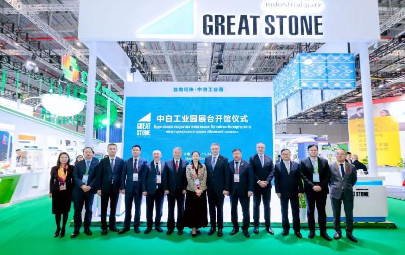 11月6日,第七届中国国际进口博览会(以下简称“进博会”)中白工业园展台举行开馆仪式。国机集团董事长张晓仑出席仪式并致辞。白俄罗斯农业部长里涅维奇、白俄罗斯驻华大使切尔维亚科夫、白俄罗斯驻上海总领事安德烈耶夫、中国商务部欧亚司二级巡视员(副司级)赵秋艳、中白工业园管委会主任亚罗申科、国机集团副总经理周开荃等出席开馆仪式。