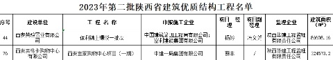 中联西北院多个监理项目荣获“2023年第二批陕西省建筑优质结构工程”