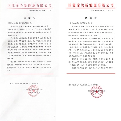 项目得到业主的充分肯定和认可,先后两次向我公司发来感谢信,赞扬项目团队的优良作风和良好的精神面貌,也为后续与国家能源集团的合作奠定了良好基础。
