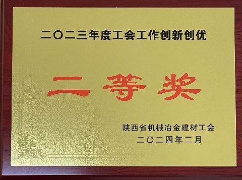 公司工会《建机制 搭平台 塑品牌--职工健康促进工程,提升职工生活品质》项目荣获陕西省机械冶金建材工会2023年度工会工作创新创优项目二等奖,《创新民主管理 助力企业发展》项目荣获优秀奖。