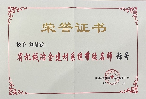 华安消防院刘慧敏被授予陕西省机械冶金建材系统“带徒名师”荣誉称号。
