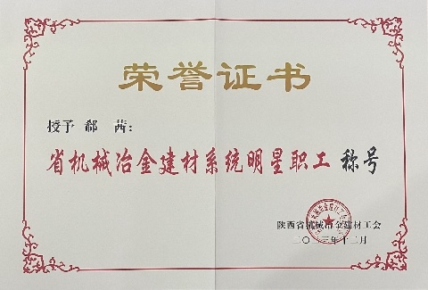 华昌院郗茜被授予陕西省机械冶金建材系统“明星职工”荣誉称号。