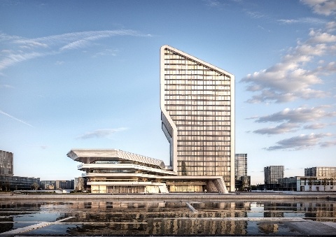 将波浪谷的自然雕塑与统万城的历史印记巧妙地融入游客中心的现代塔楼与裙房建设中,赋予建筑动感与生命力。高耸的主体结构与环绕的裙房,通过材质的巧妙运用,形成了虚实、色彩深浅的对比,这不仅遵循了和谐美学的原则,也体现了对创新的追求,力图打造一个集现代感、高效能、环保意识与智能化于一体的游客综合服务区,为来访者提供独特而深刻的体验。
