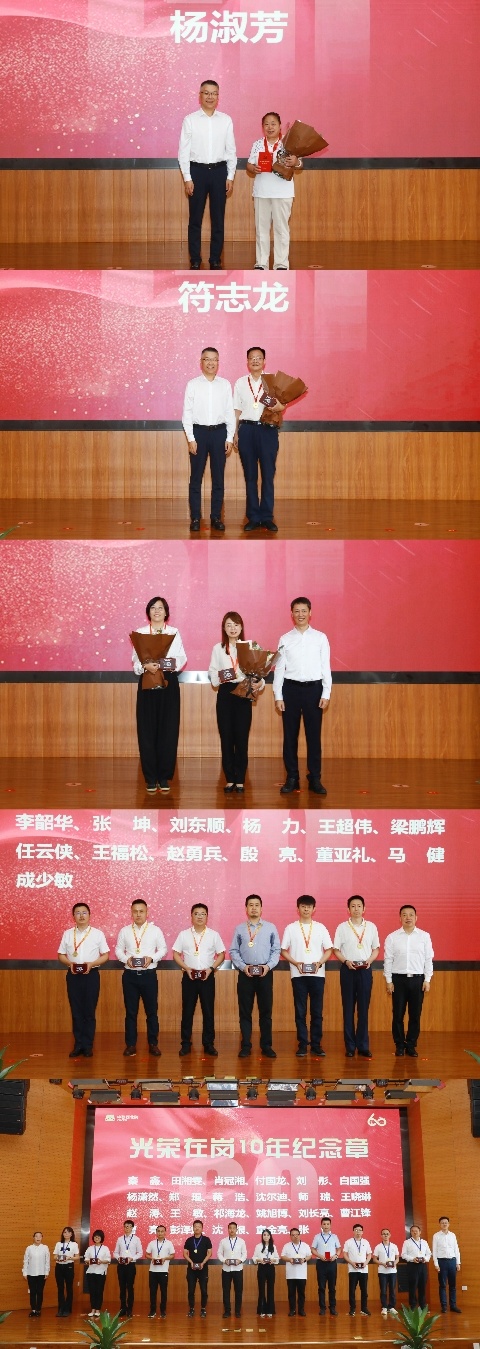 大会现场,颁发了光荣在岗10年、20年、30年、40年纪念章以及光荣在党50年纪念章。感谢60年的创业路上每一位忠诚企业、爱岗敬业,在平凡的岗位上创造出不平凡的劳动者。
