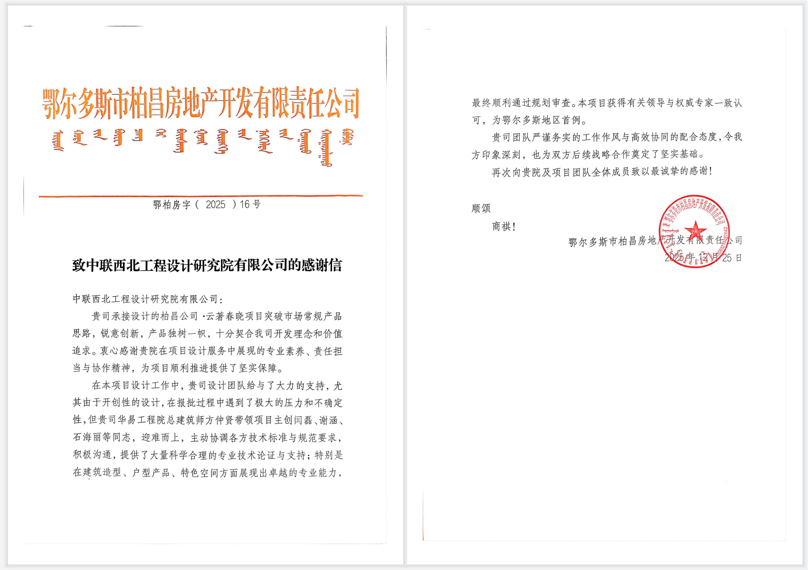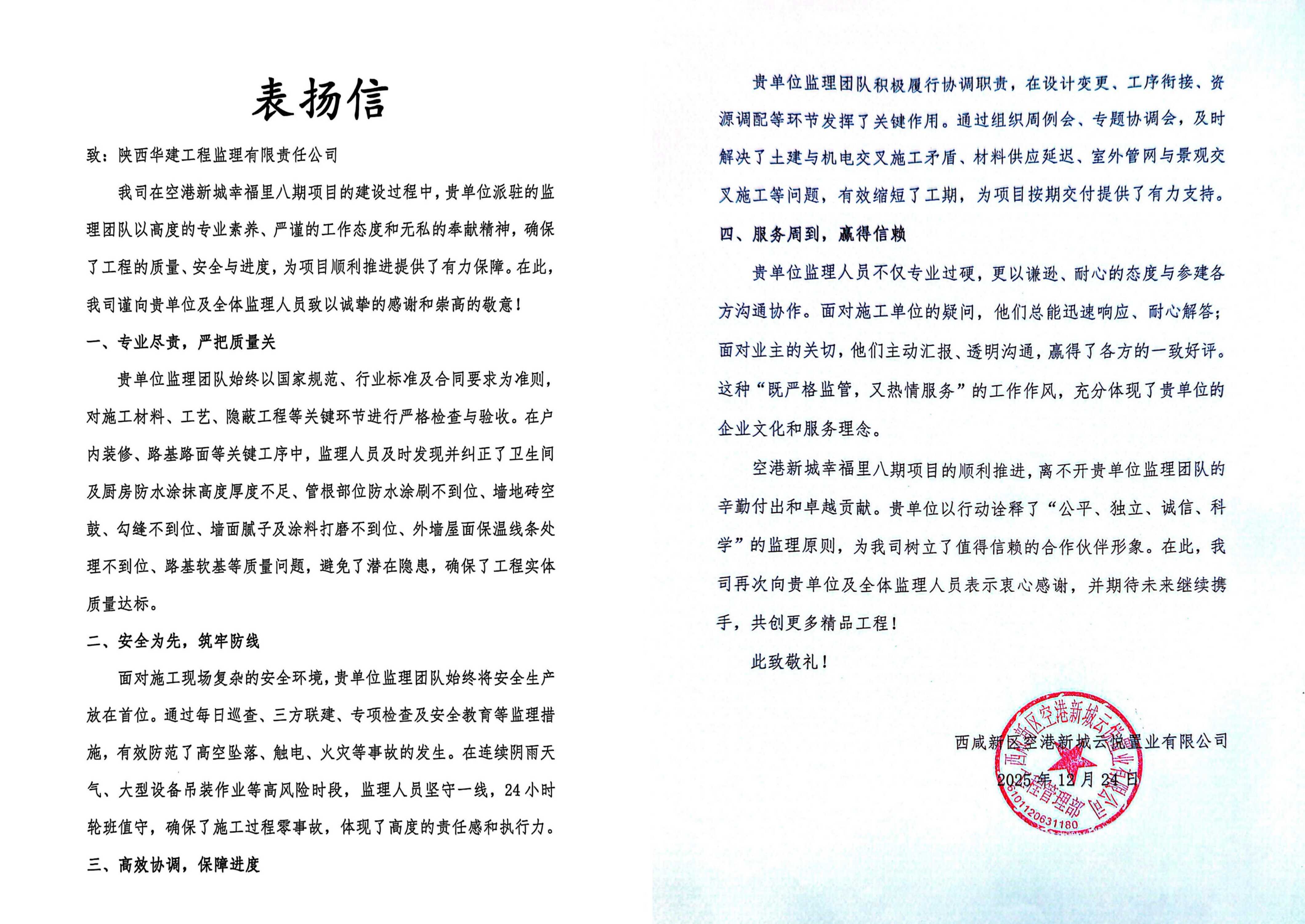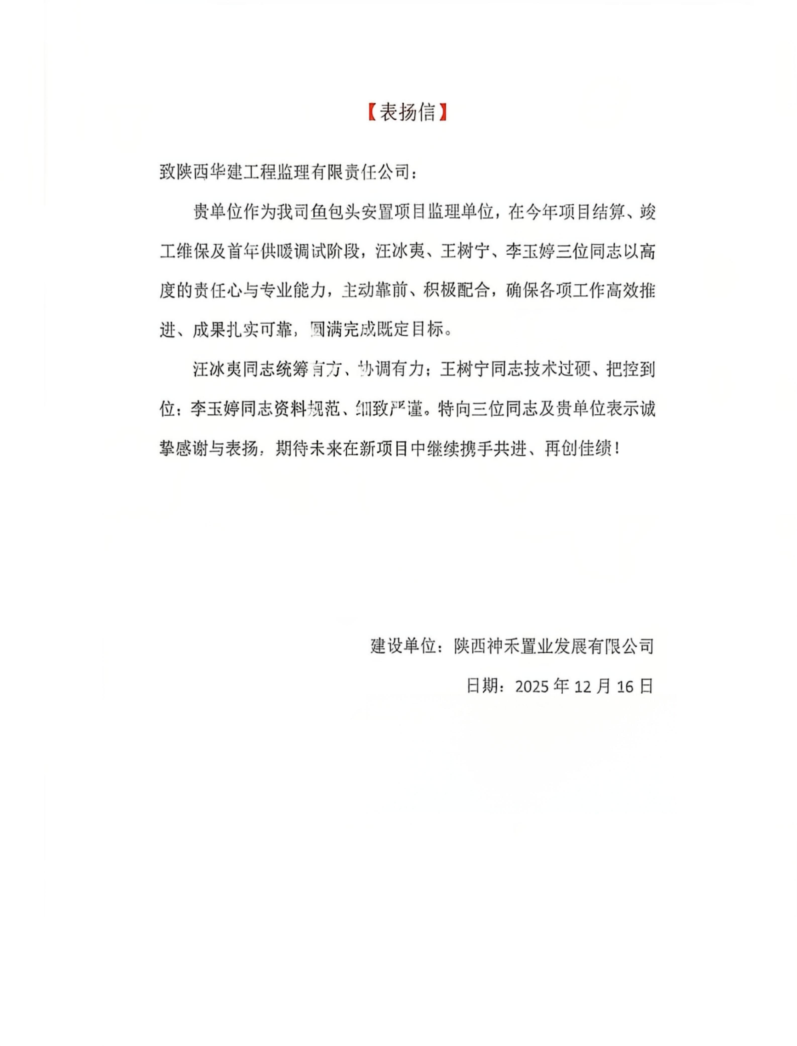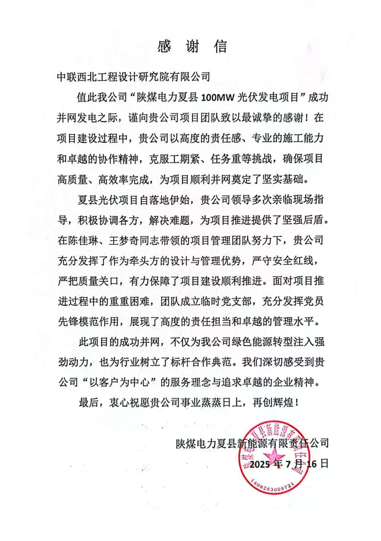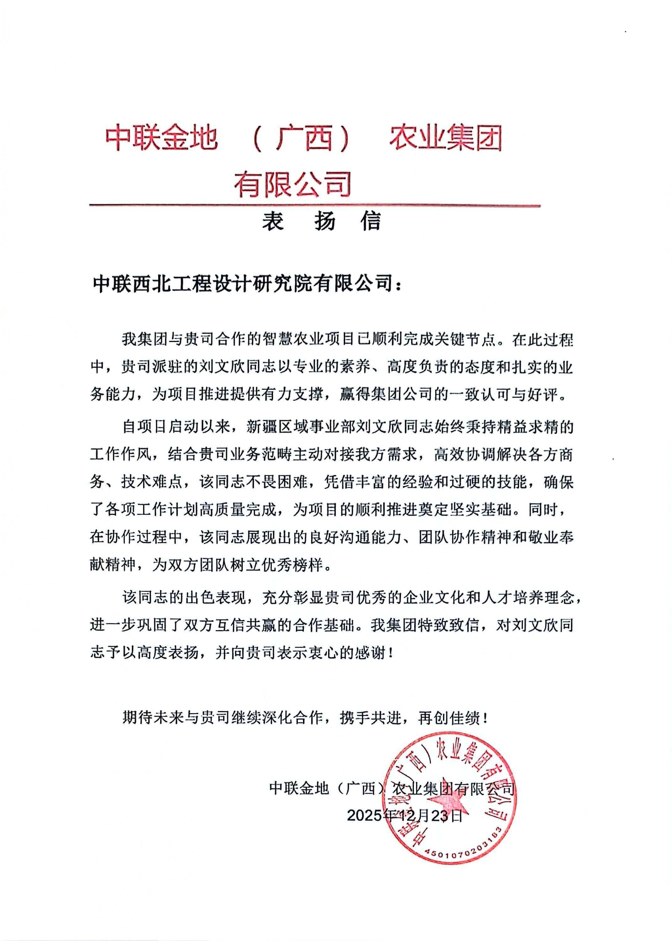 履约有诺,信誉满满 | 中联西北院收获一波表扬信