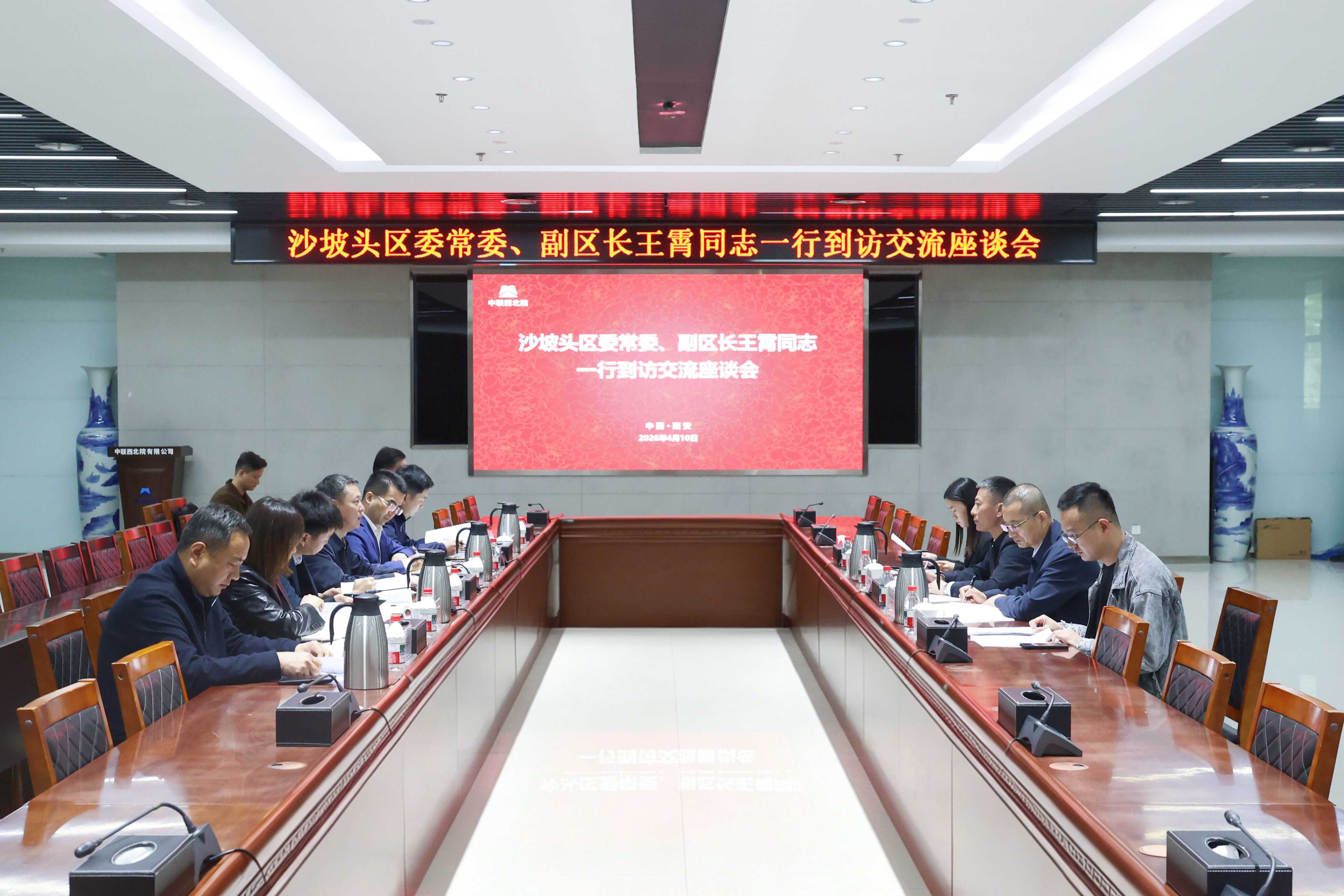 4月10日,中卫市沙坡头区委常委、副区长王霄一行到访中联西北院,与中联西北院总经理、党委副书记唐振宇座谈交流。双方围绕中央企业在“十五五”期间深度融入区域发展、发挥“策产投建营”一体化优势赋能地方建设等事宜深入交流。