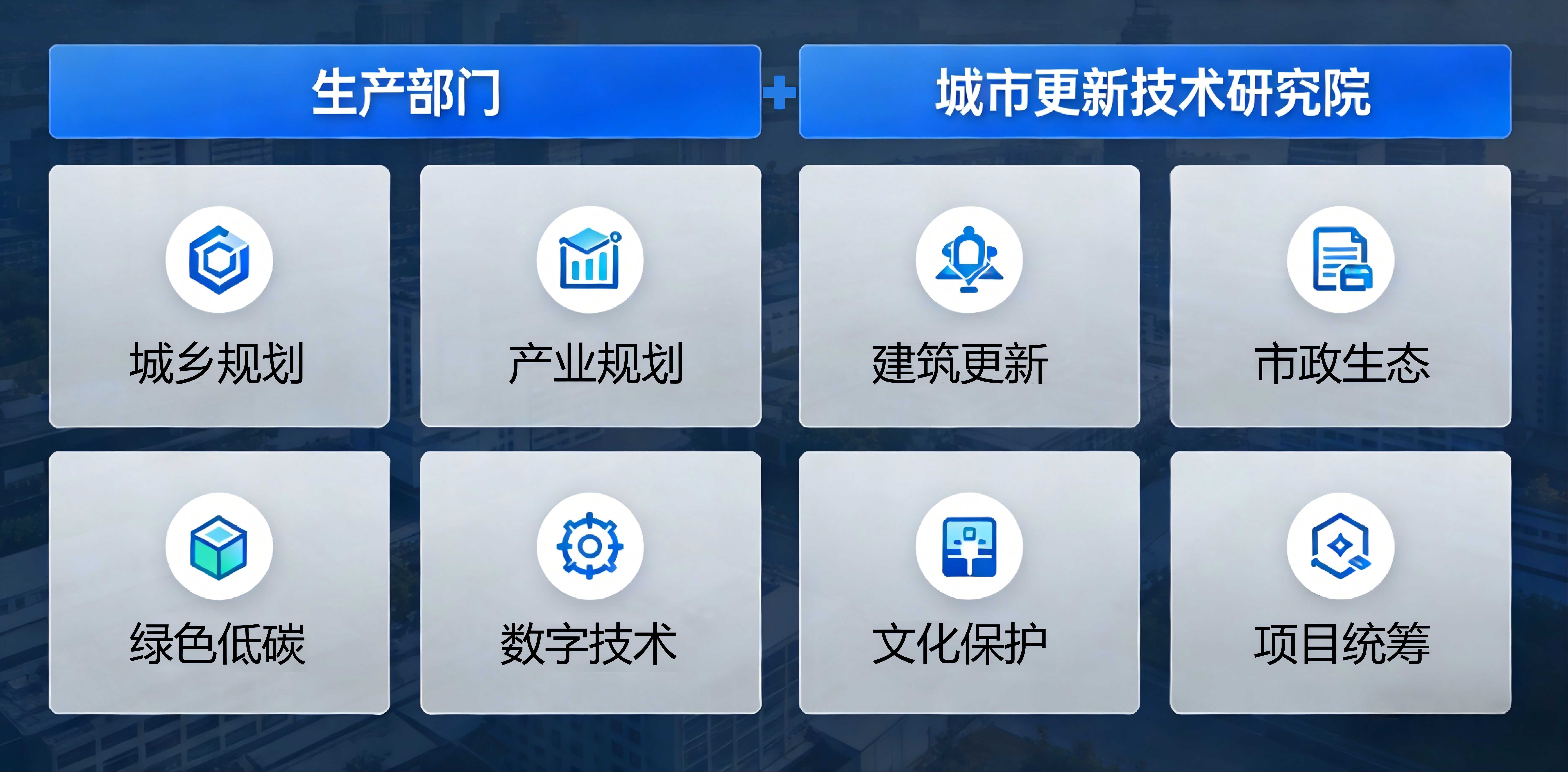 1.构建“生产部门”+“城市更新技术研究院”产研结合的模式,具备城乡规划、产业策划、建筑更新、市政生态、绿色低碳、数字技术、文化保护、项目统筹的综合能力。