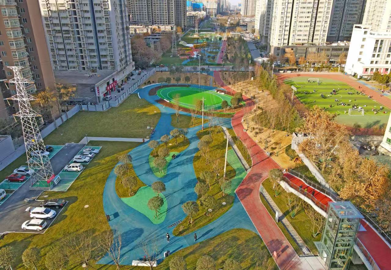 红旗铁路公园项目位于西安市红旗东路以南、华清西路以北,全长约8公里,总面积959.4亩,其中公园绿地897.28亩,商业用地62.12亩,是一座依托原工业铁路改造而成的线性城市公共空间。