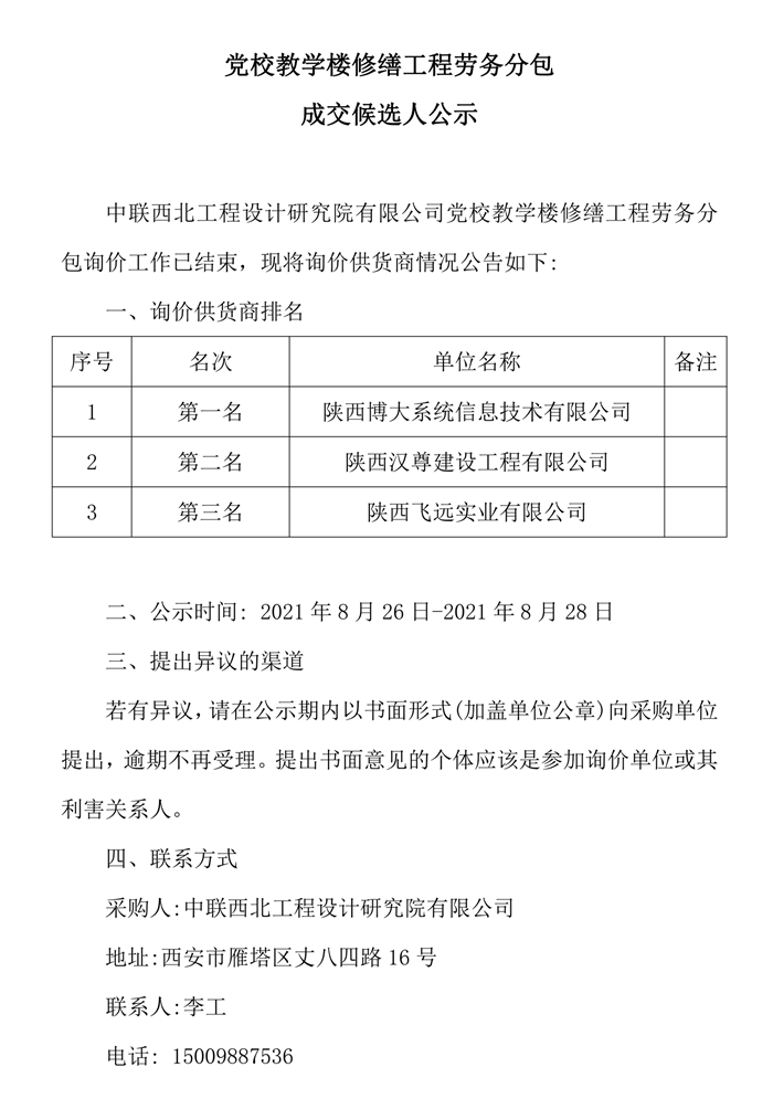 西安微电子技术研究所长安园区新建生产工艺厂房设计分包中标候选人公示