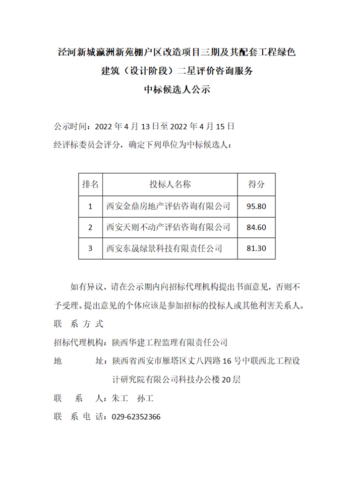泾河新城瀛洲新苑棚户区改造项目三期及其配套工程绿色建筑(设计阶段)二星评价咨询服务中标候选人公示