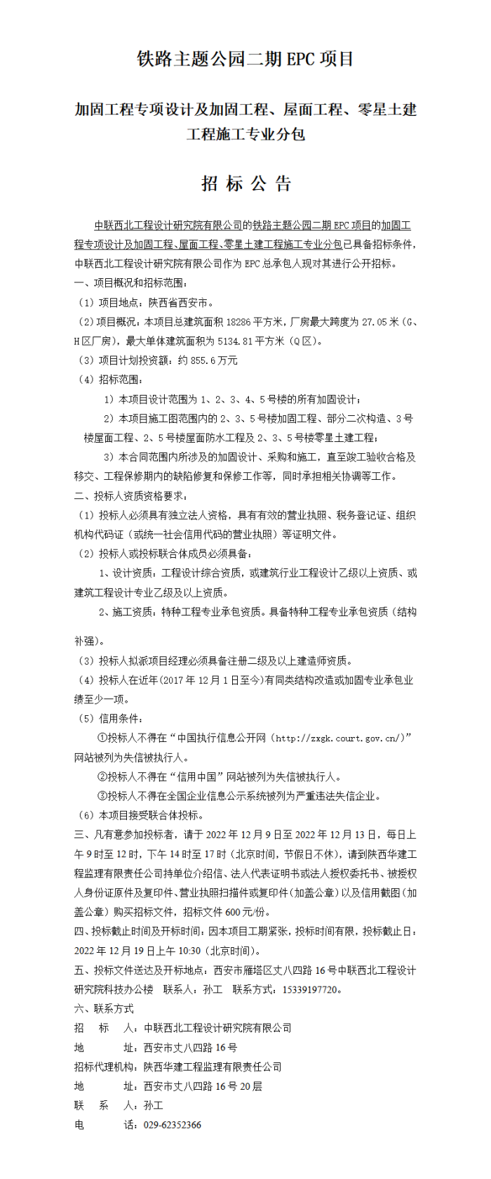 铁路主题公园二期EPC项目加固工程专项设计及加固工程、屋面工程、零星土建工程施工专业分包