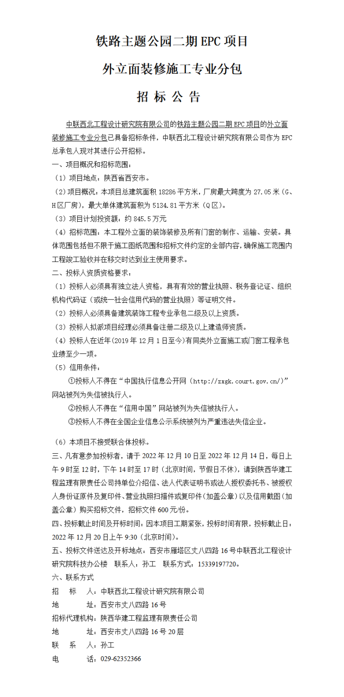 铁路主题公园二期EPC项目外立面装修施工专业分包