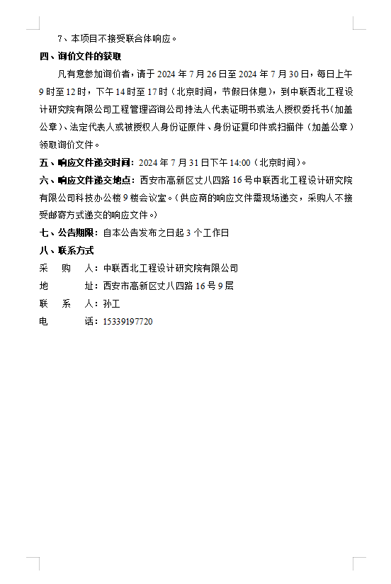 中联西北工程设计研究院有限公司便利店商品采购项目招标公告