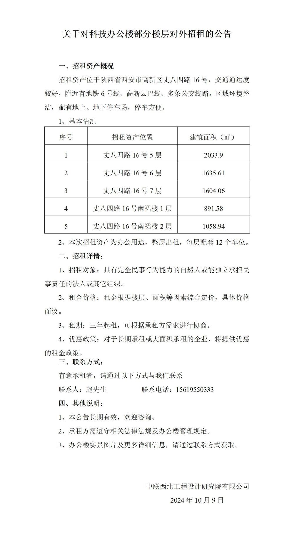 关于科技办公楼部分楼层对外招租的公告