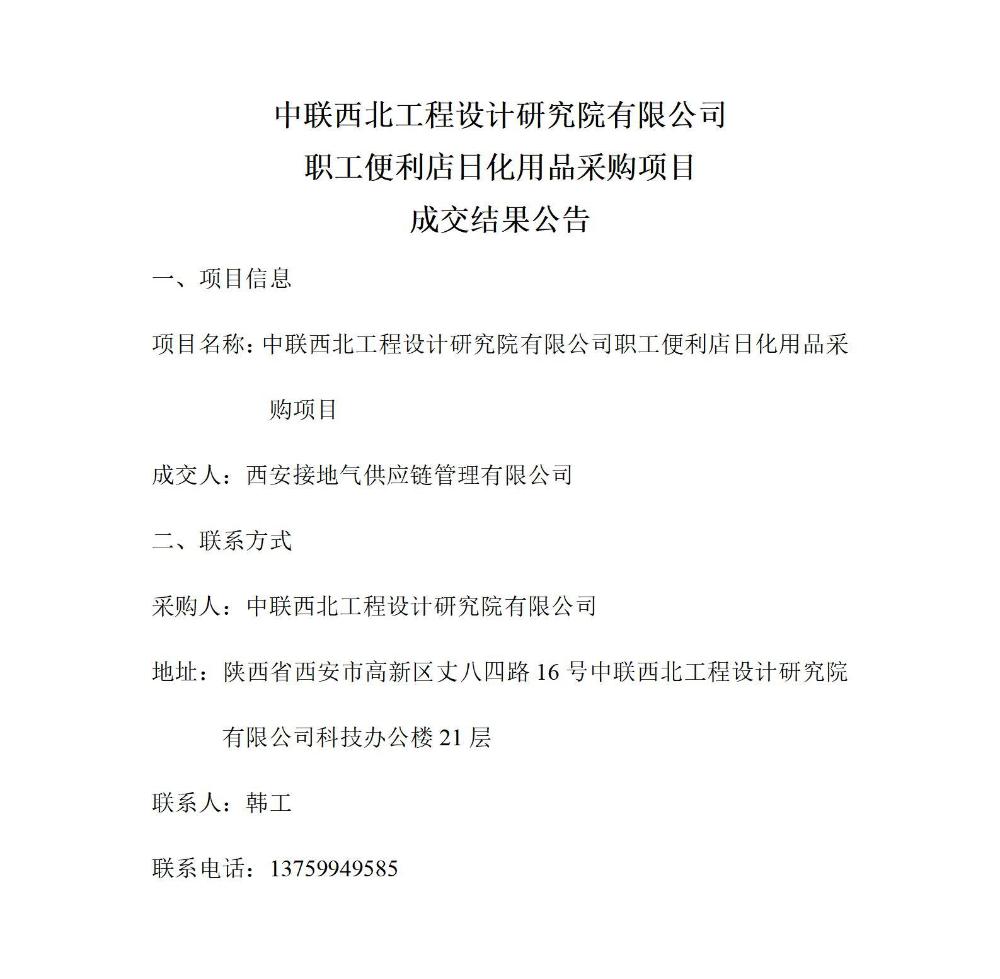 中联西北工程设计研究院有限公司职工便利店日化用品采购项目成交结果公告